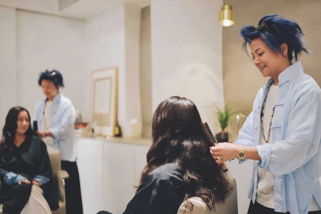 これは単なる機械的な作業ではない。指先の感覚で髪と頭皮の“声”を聞き取るかのような、職人的な細やかさこそが〈希聲堂〉の真価だ。スチームによる成分の深層浸透や、頭皮の筋膜を解きほぐすプロセスを経て仕上げられた髪は、表面的な艶やかさだけでなく、根元から立ち上がるような軽やかさと、一本一本に芯の強さを宿す。