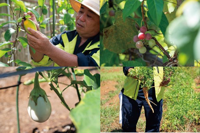 完全無農薬だからこそ、虫食いや野生動物による被害など日々困難があるというが、2016年に始まったこの農園は、地元で収穫された野菜とともに、沖縄にあるザ・テラスホテルズグループ全体へ提供されるまでに成長を遂げている。