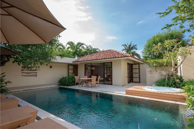 各部屋は独立した棟となる贅沢なつくりで、全室プール付き。