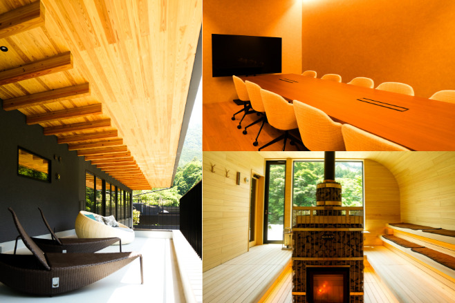 薪サウナ、屋外プール、星を仰ぐ焚き火エリアはその創造的感覚を潤すためのサポート空間。水はすべて、富士の地下25メートルから汲み上げた天然水だ。その清冽な流れが、身体の奥へと“地の力”を届ける。サウナで熱を浴び、富士の天然水に飛び込む。その一連の体験は、内側にポジティブなリズムを刻む。夜が訪れれば、星が瞬き、プールが月を映し出す。焚き火を囲みながら語らう時間は、一緒の記憶として脳裏に刻まれるだろう。